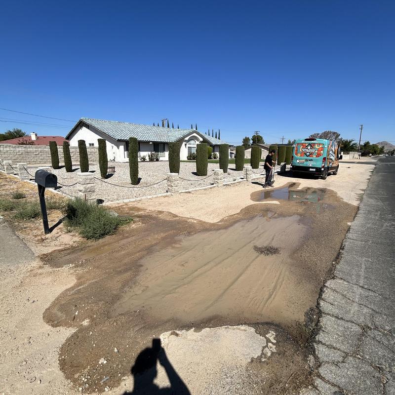 Guillen Family Plumbing repaired a leaking water main near the water meter in Victorville, California. The team shut off the water, excavated the site, replaced damaged pipe sections with new brass and PVC fittings, and tested the system. The repair passed all pressure tests with no leaks.